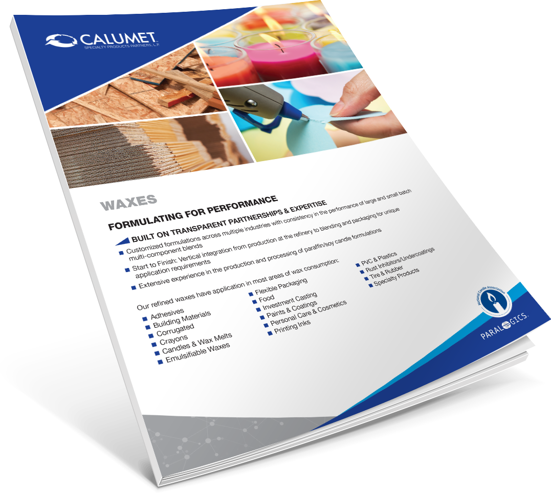 Calumet Specialty Products is a premier North American producer of fully refined paraffin waxes, intermediate waxes and microcrystalline waxes. Built on transparent partnerships and expertise, our ability to handle custom formulations across multiple industries with consistent performance makes us a leading wax partner.
