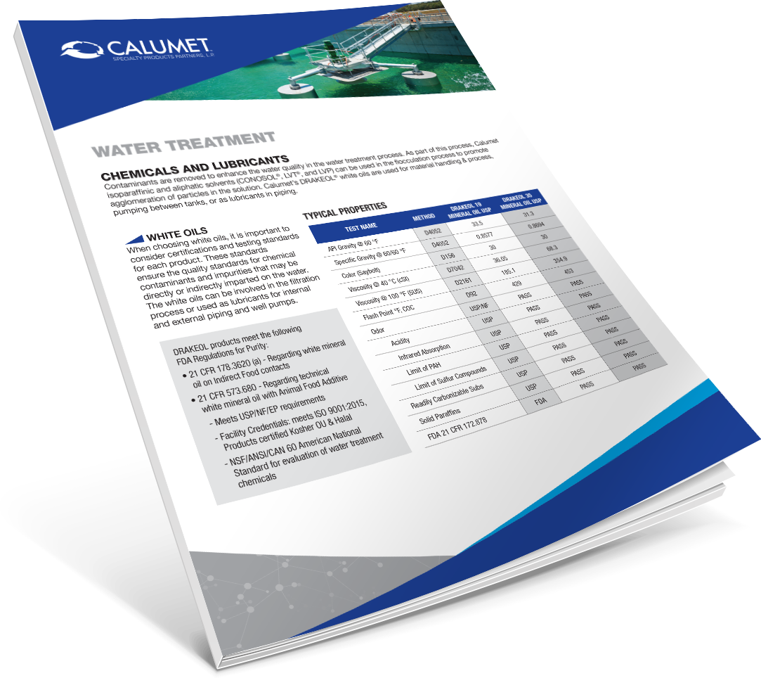As part of the process to enhance water quality, Calumet offers isoparaffinic and aliphatic solvents that can be used to formulate flocculating agents. In addition, we have white oils that can be used for material handling and processing, pumping between tanks, or as piping lubricants.