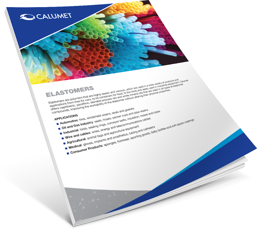 Elastomers are used in a wide variety of products and applications from tires for cars, to lid containers for food, to the tools and seals used in industrial equipment. Calumet offers naphthenic, paraffinic, blended process oils and white mineral oils that are used in all types of elastomer compounds.
