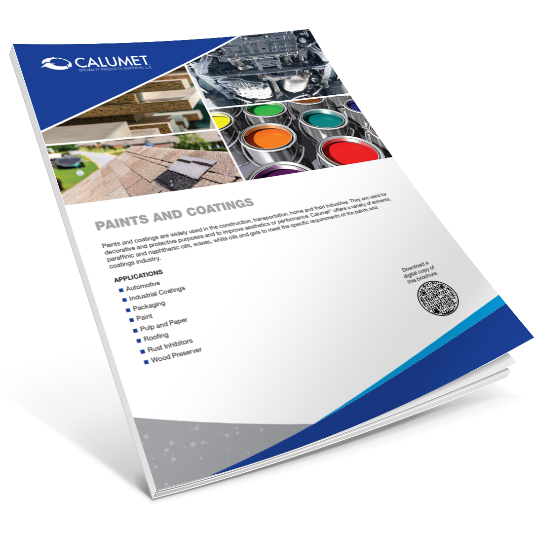 From construction and transportation to food and agriculture to medical and pharmaceutical, Calumet offers a variety of solvents, paraffinic and naphthenic oils, waxes, white oils and gels to meet the specific and demanding requirements of the paints and coatings industry.